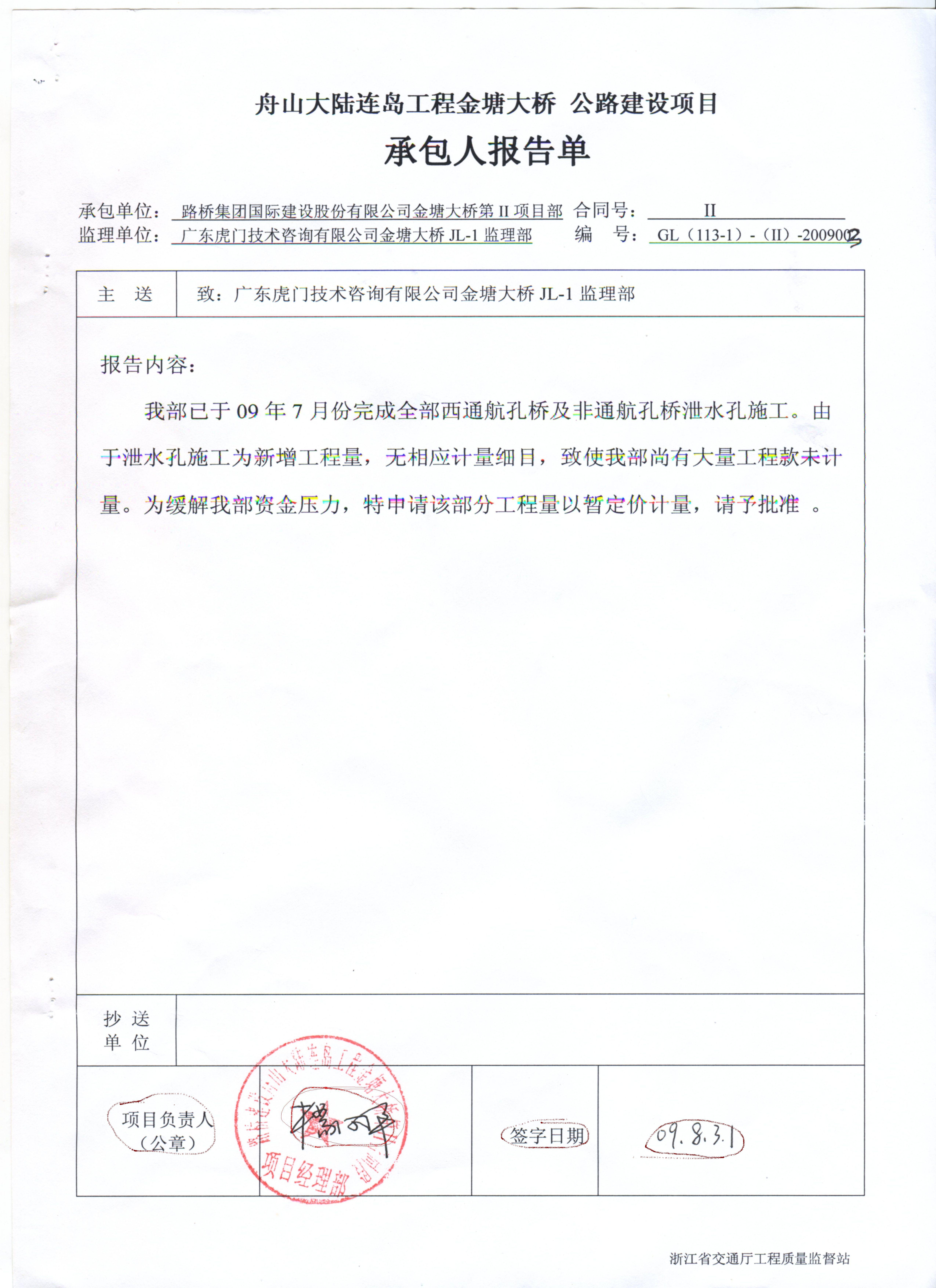 7月29日,舉報人楊之君(化名)在國內(nèi)某知名論壇上發(fā)布了浙江舟山跨海大橋存在非法轉(zhuǎn)包、偽造簽名等問題的舉報,并附上大量的大量的原始資料,該貼立即引起廣泛關(guān)注,更新甚至超過達(dá)到十頁,三天之后,舉報人接受了記者近4個小時的當(dāng)面采訪。【更多】